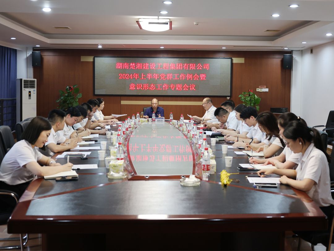 8月21日,楚湘建工集團2024年上半年黨群工作例會暨意識形態工作專題會召開,黨委書記、董事長聶秋洪,紀委書記、工會主席陳洪鵠,所屬各黨總支書記、綜合部負責人,黨群工作部全體人員等參會。